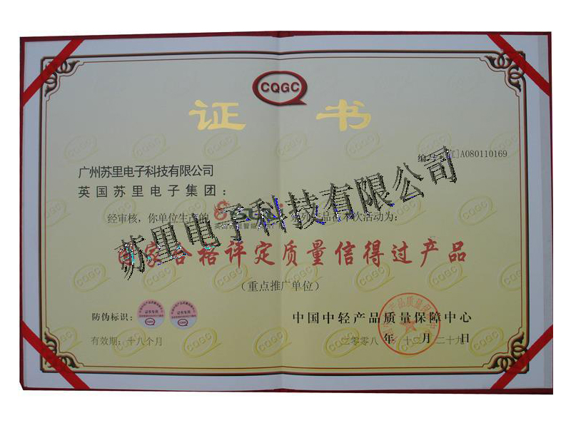國(guó)家合格產(chǎn)品證書(shū)